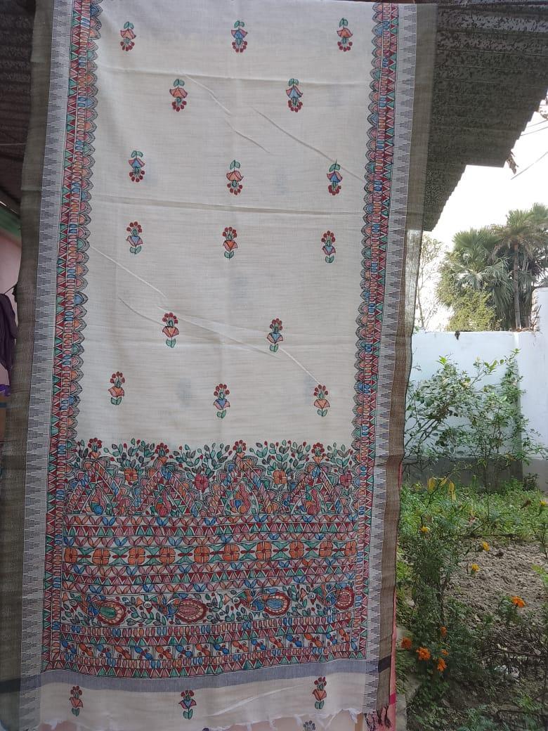 Elevate your style with our Linen Dupatta adorned with exquisite Madhubani art. This remarkable piece is a true celebration of artistry and tradition.