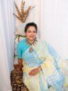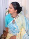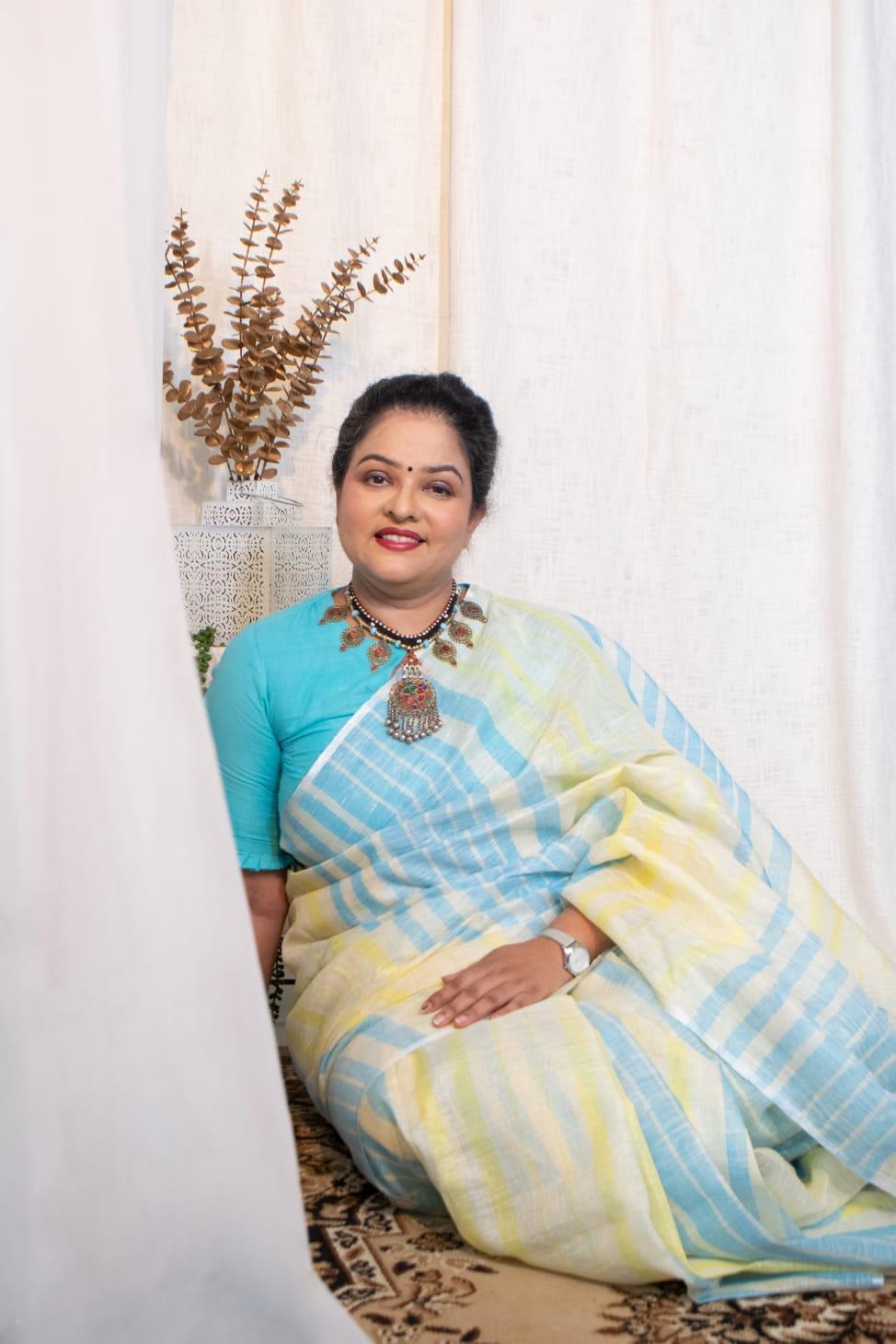 Linen saree in Blue & Yellow