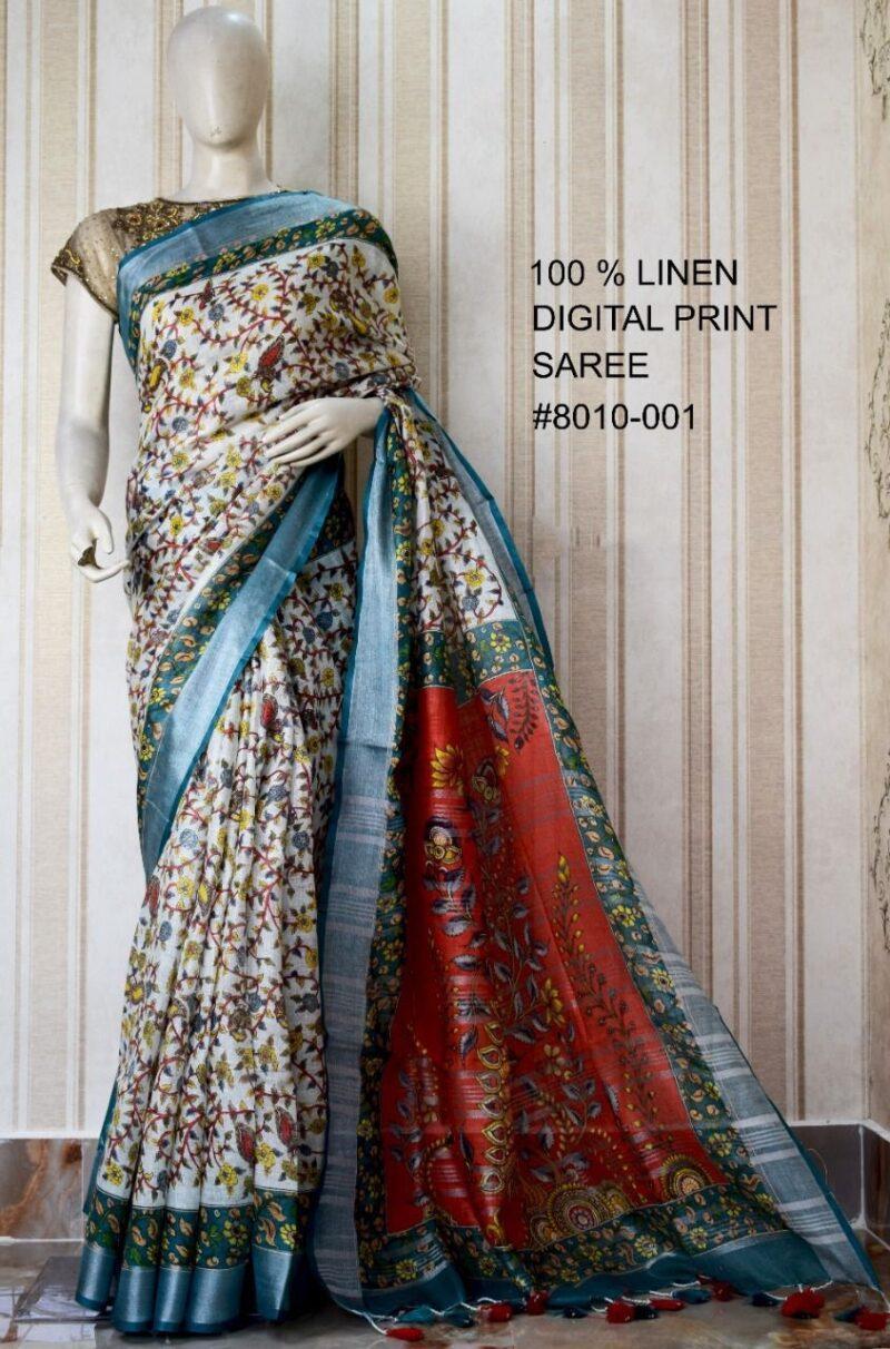 Crafted from 100% pure linen, these sarees offer unmatched comfort and a luxurious drape. The intricate digital prints add a contemporary flair, making them perfect for various occasions, from casual gatherings to formal events.