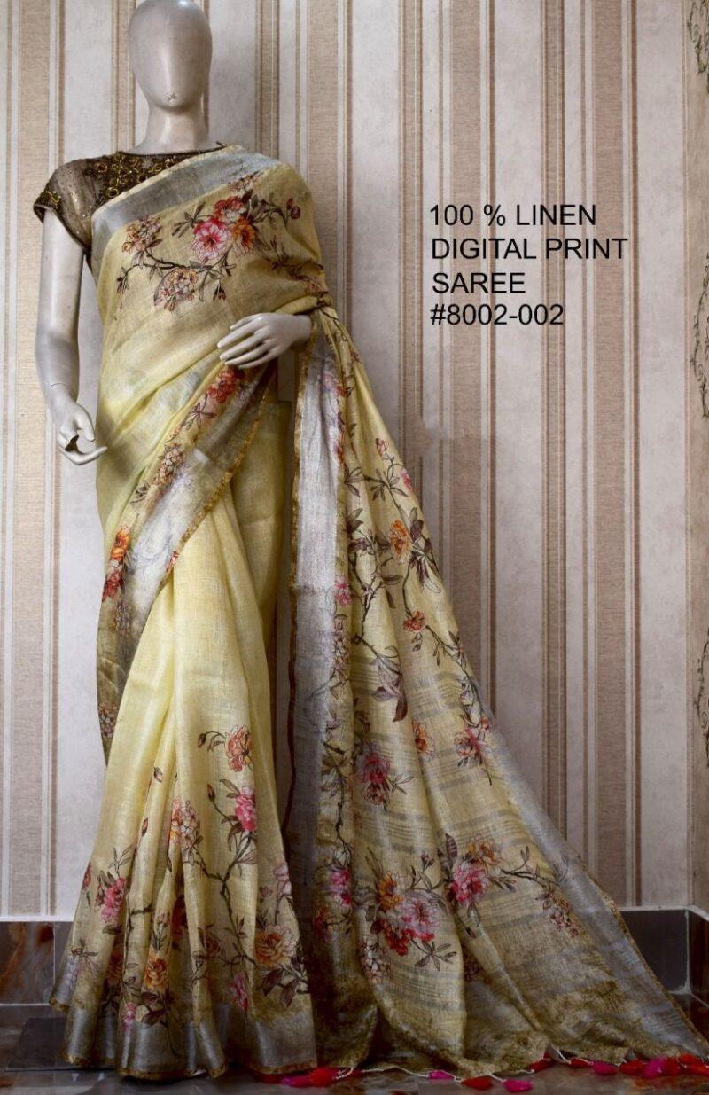 Crafted from 100% pure linen, these sarees offer unmatched comfort and a luxurious drape. The intricate digital prints add a contemporary flair, making them perfect for various occasions, from casual gatherings to formal events.