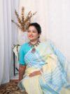 The border and pallu are thoughtfully designed to enhance the traditional appeal while maintaining a clean, modern aesthetic. The crisp linen weave gives the saree a refined texture, making it perfect as a lightweight festive saree or elegant everyday ethnic wear.