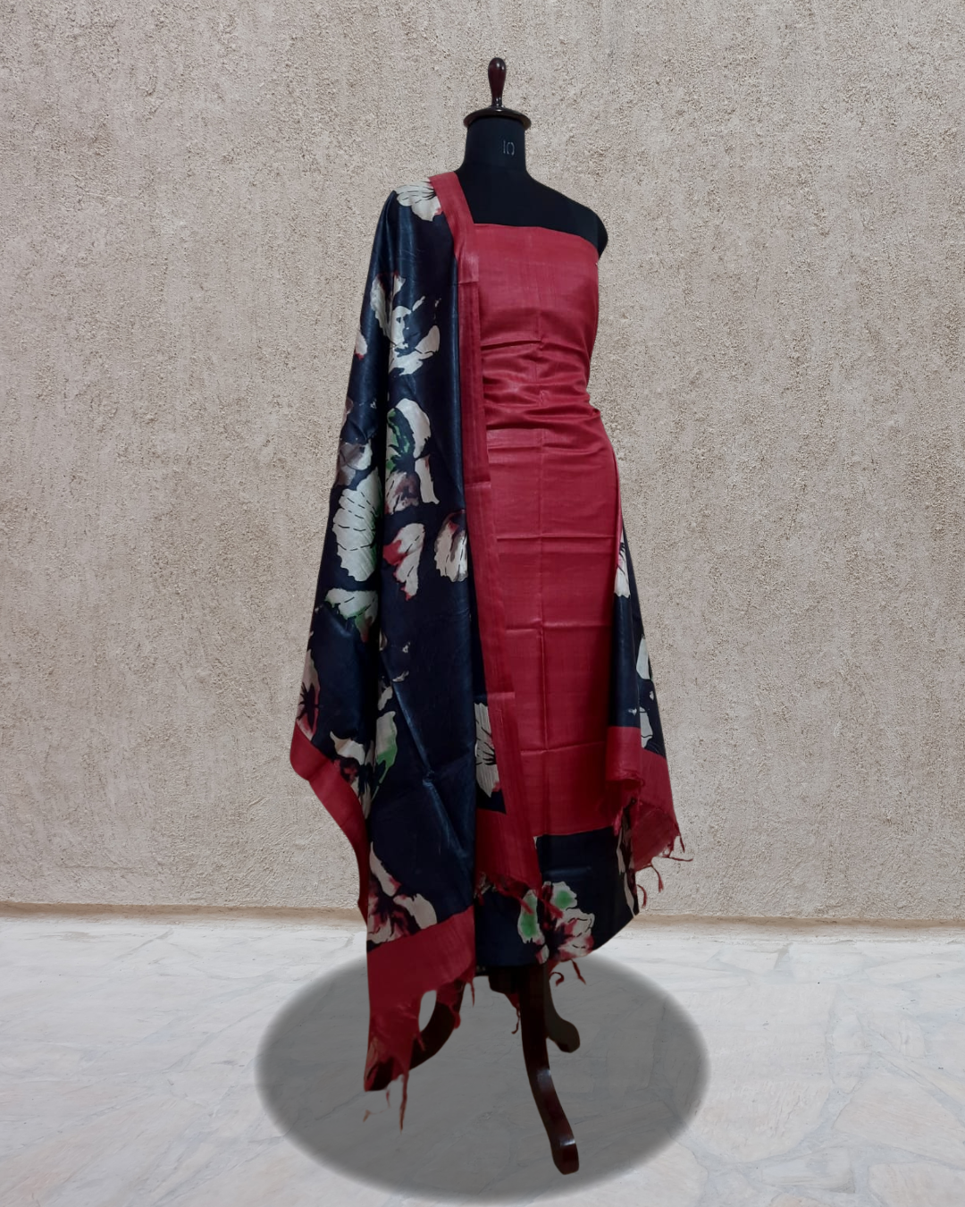 Make a bold yet elegant style statement with this Red & Black Tussar Silk Block Printed 2-Piece Suit Set, crafted for those who appreciate classic contrasts and traditional craftsmanship. The kurta fabric is made from premium Tussar silk, known for its natural texture, durability, and refined sheen.