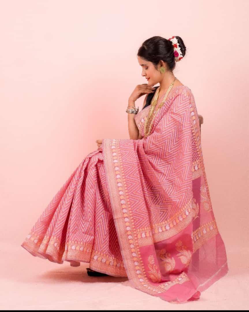 Saree Pure cotton chevron (Pink)