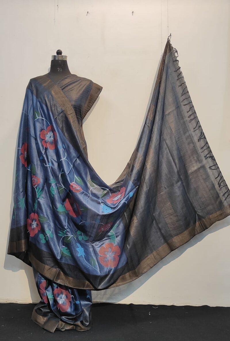 Tussar Silk Saree (Blue & Grey)